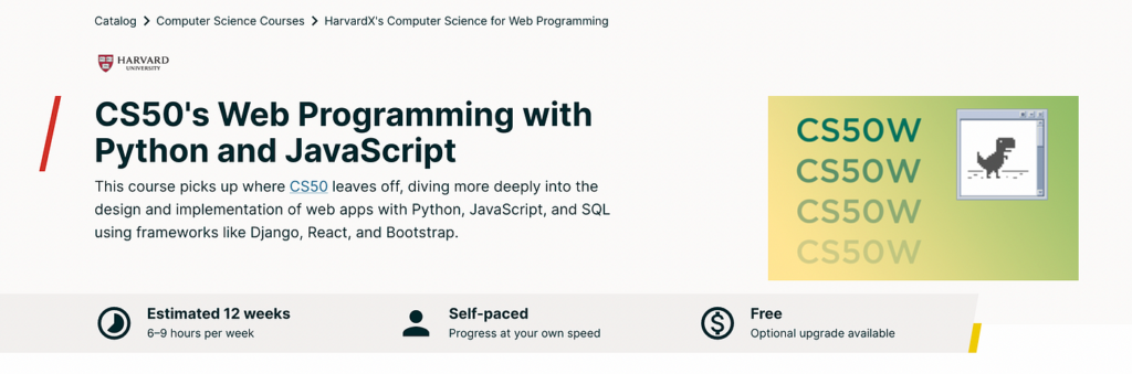2. Harvard University’s CS50’s Web Programming with Python and JavaScript