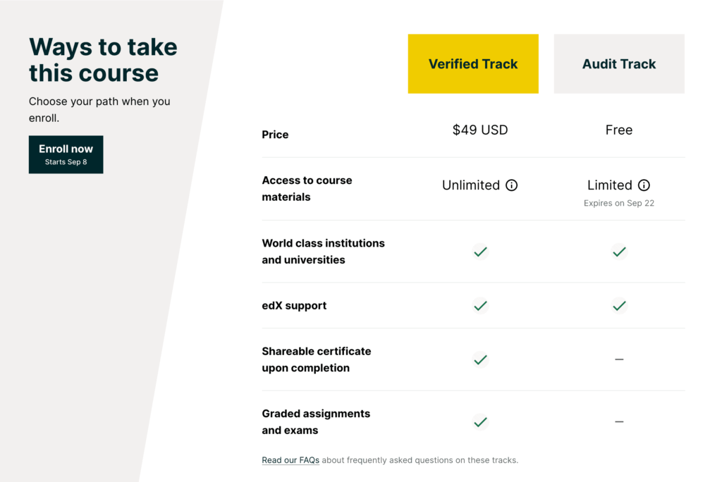 - Audit most courses for free